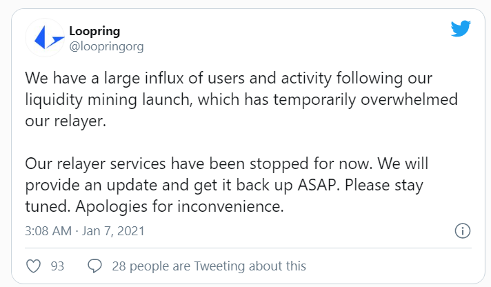 در حال حاضر، لوپرینگ سود ماینینگ نقدینگی خوبی ارائه میدهد. در واقع این سود آنچنان خوب است که واریزها به حدی زیاد بودند که باعث از کار افتادن این وبسایت شده است. لوپرینگ در توییتر در این خصوص نوشته است: