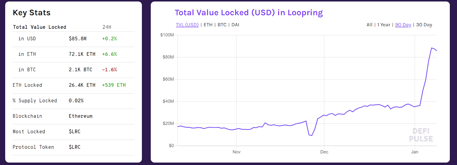 طبق گزارش DeFi Pulse، کل سرمایه مسدودشده در لوپرینگ در سال ۲۰۲۱ افزایش چشمگیری یافته است.