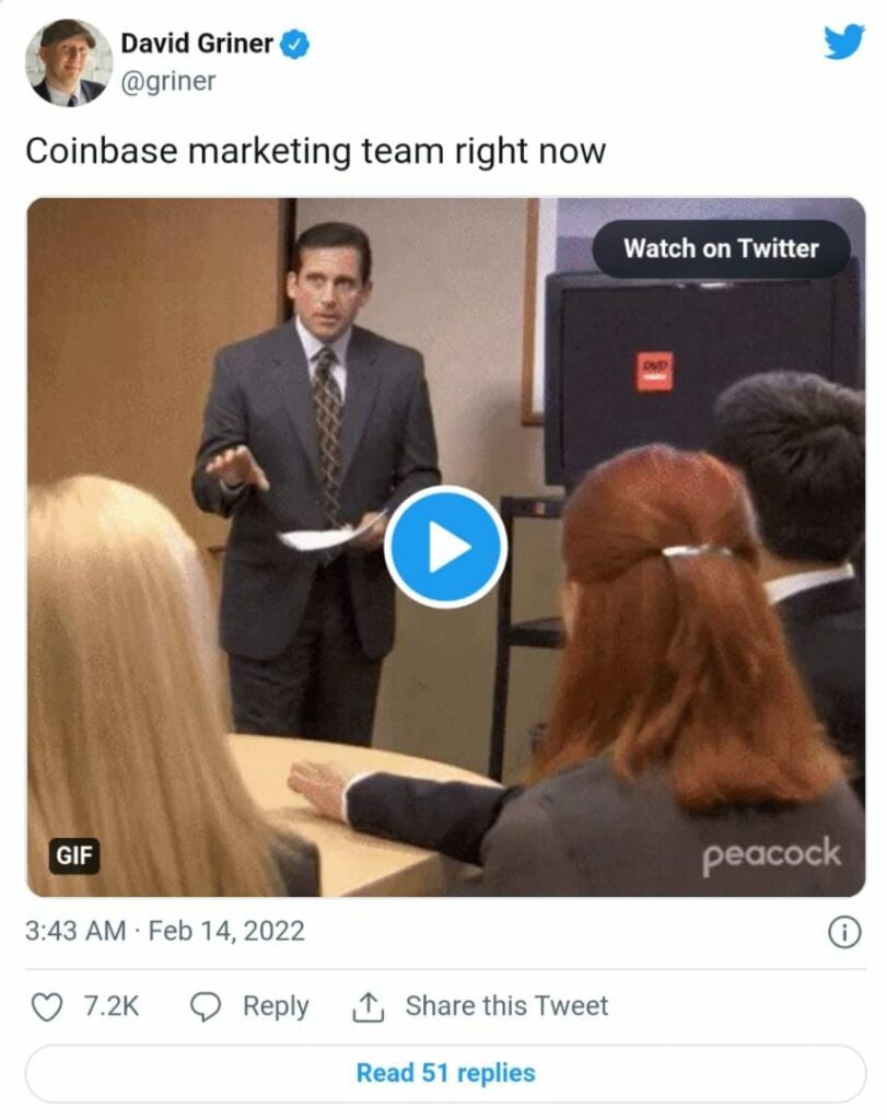 در این بین، این تبلیغ توجه شبکههای اجتماعی را به خود جلب کرده است. ادیتور AdWeek گفته است این موضوع بدون شک تیم بازاریابی کوین بیس را خوشحال میکند.