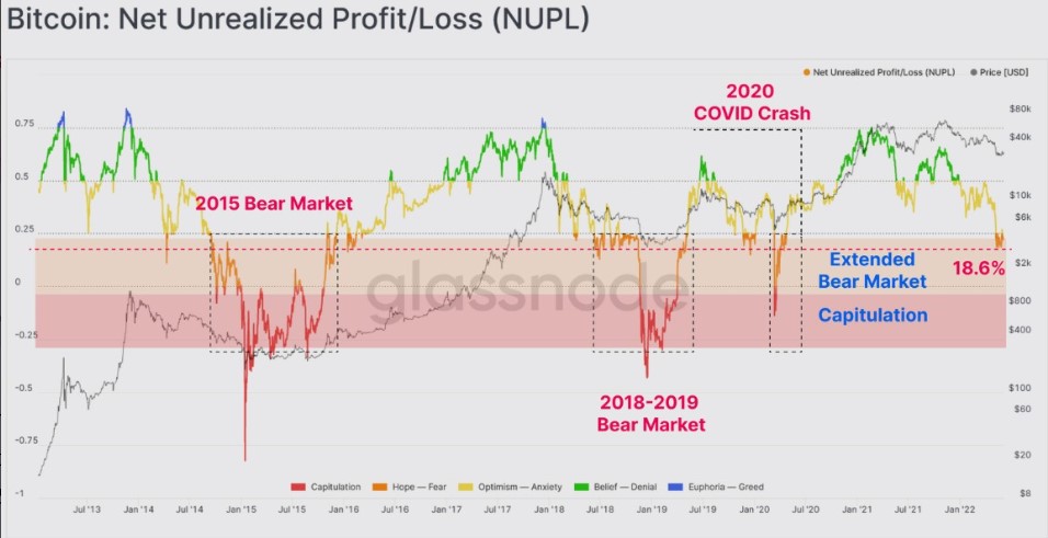 شاخص NUPL نشان میدهد کمتر از ۲۵٪ ارزش بازار در سود قرار دارد؛ منبع: گلسنود