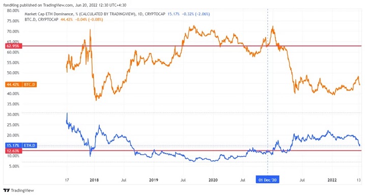 نمودار مقایسه دامیننس بیت کوین و اتریوم منبع: تریدینگ ویو