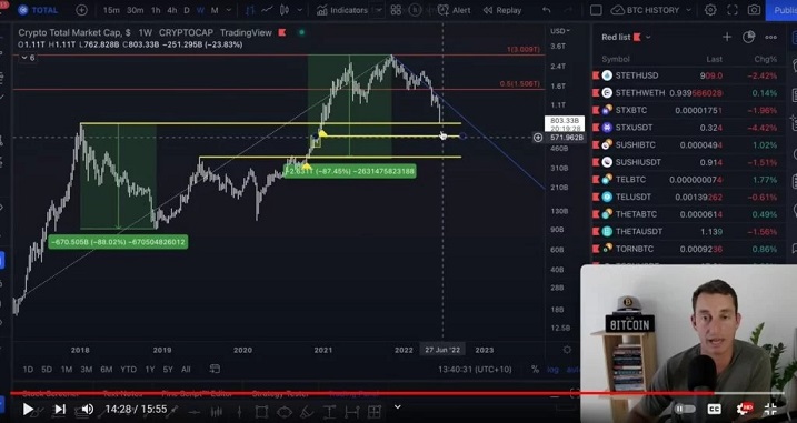نمودار ارزش کل بازار رمزارزها منبع: یوتوب