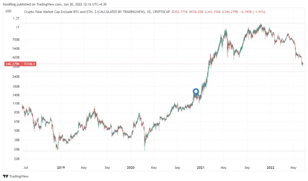 نمودار ارزش کل بازار رمزارزها (به استثنا بیت کوین و اتریوم) منبع: تریدینگ ویو