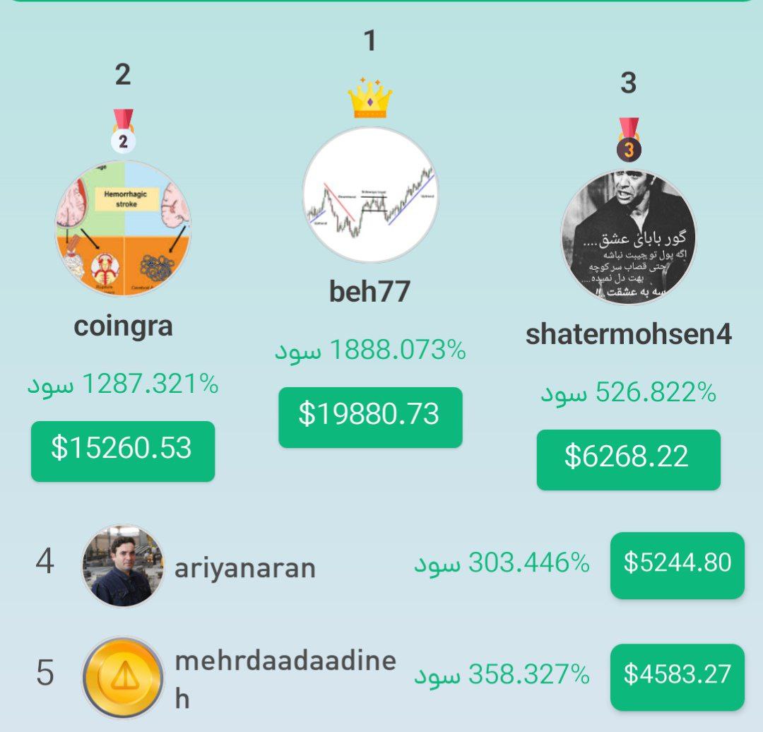 تریدرهای برتر رتبههای ۶ تا ۱۰ نیز بدون جایزه نماندند و هر یک از آنها ۴,۰۰۰ کوین و ۴۰۰ جم دریافت کردند.