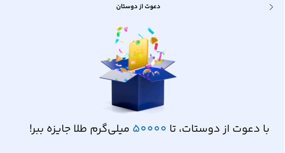 ✅ شما دعوت میکنید → ✅ دوستتان ثبتنام میکند → 💰 هر دو ۵ میلیگرم طلا جایزه میگیرید!