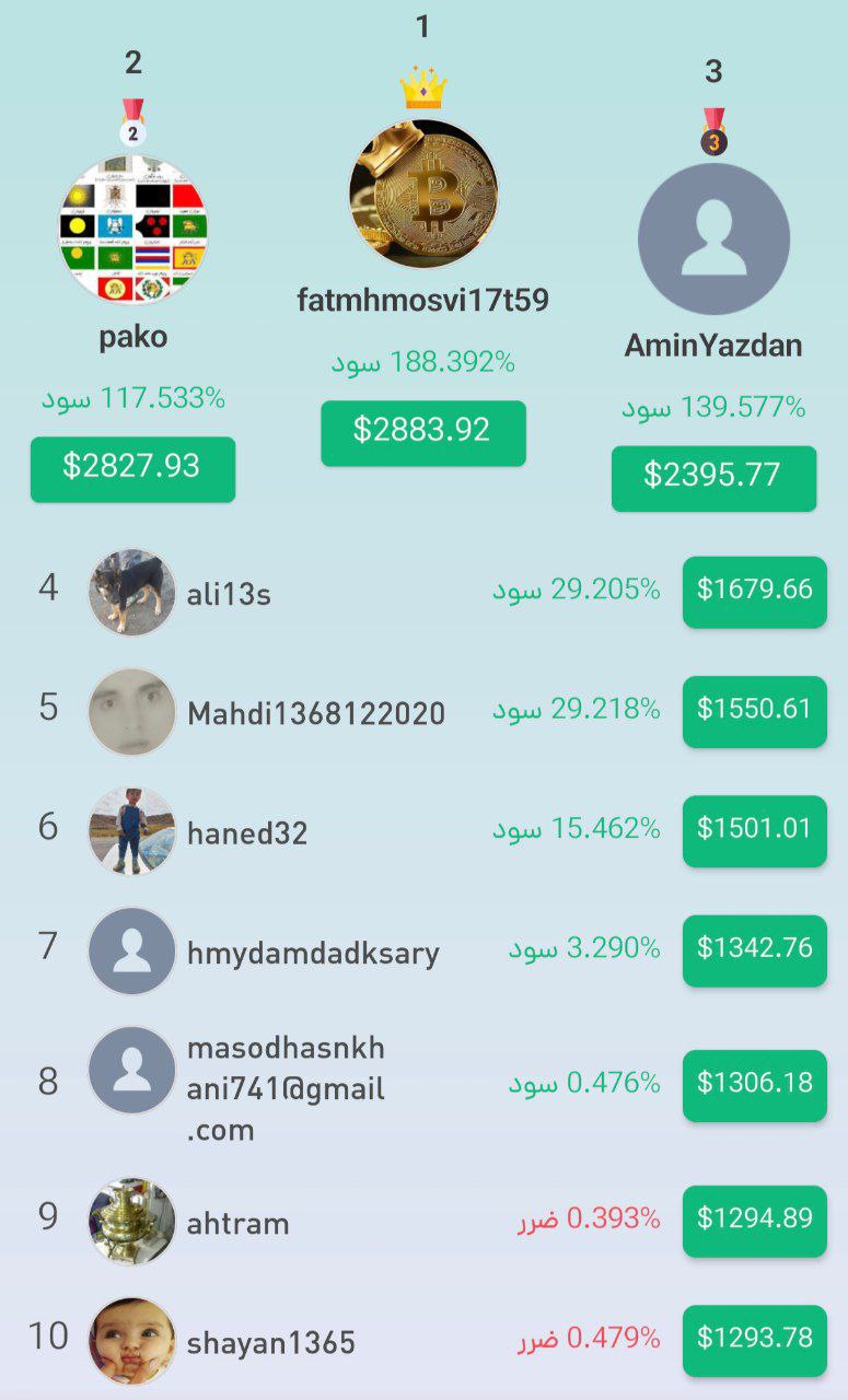 - یک نفر از میان کاربرانی که بیش از ۵۰ معامله در هفته انجام دادهاند، برندهی ۴۰,۰۰۰ فلوکی میشود. این جایزه به کاربر در این سری از مسابقات به کاربر "Pakbaz" می رسد.