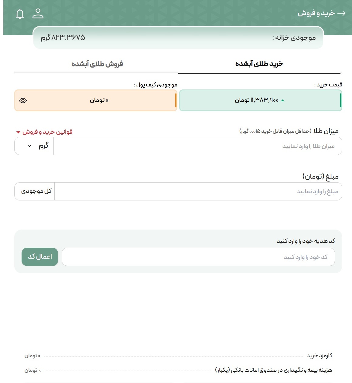 - مشاهدهی فاکتور و موجودی طلای خریداریشده مثلاً شما میتوانید حتی با بودجهی ۲۰۰ هزار تومان هم شروع به خرید طلا کنید!