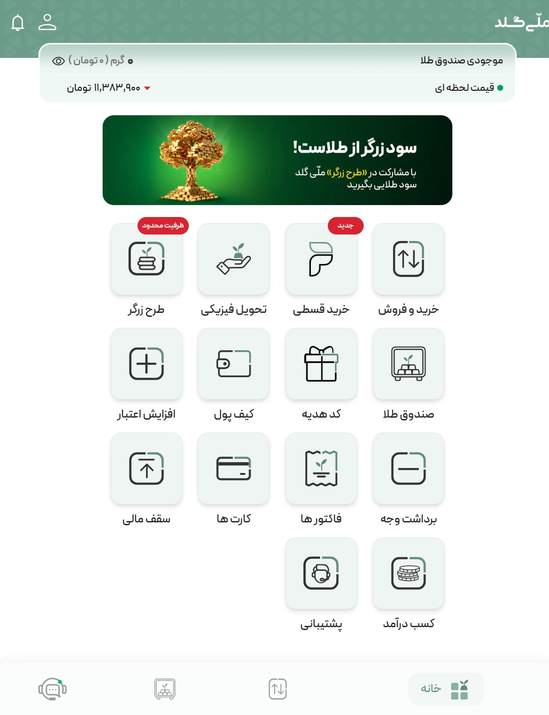 - دسترسی مستقیم به خریدوفروش از صفحهی اصلی