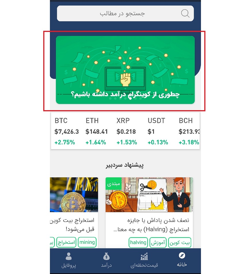 علاوه بردرآمدزابودن این برنامه مقالات واخبارهای به روزش واقعاعالیه حداقل بااین برنامه دیگه میتونیم بادنیای ارزهای دیجیتال ارتباط برقراکنیم ومهم ترتبادل نظراتی که میشه عالیه خداقوت وخسته نباشید