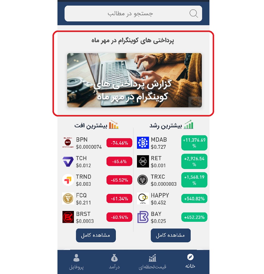 بهترین نرم افزار در حوزه ارز دیجیتال هست که برای فارسی زبانان طراحی شده و انصافا خیلی خوب تونسته طرفداران خودشو راضی نگه داره امید که تیم خلاق طراحی و برنامه ریزی برنامه کوینگرام ابداعات خودشونه بهینه تر و جذابتر کنن.